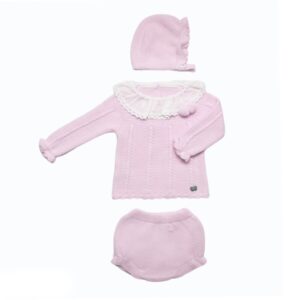 Juliana 3 Piece Knit Pom Pom Set, Pink