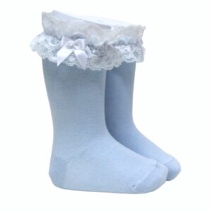 Meia Pata Lace Cuff Knee High Socks, Blue