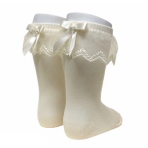 Meia Pata Lace Cuff Knee High Socks, Cream