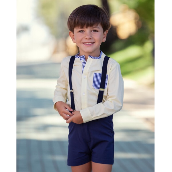 - Navy gingham check pocket & trim