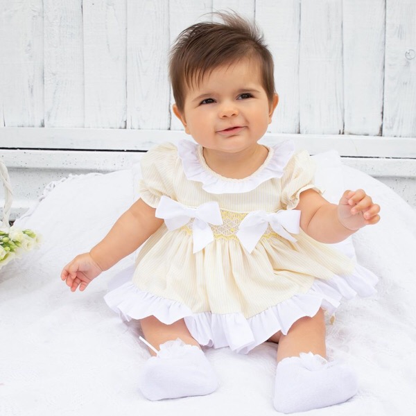 lemon stripe hand smocked dress & pants set, suitable as a summer sundress or nightgown