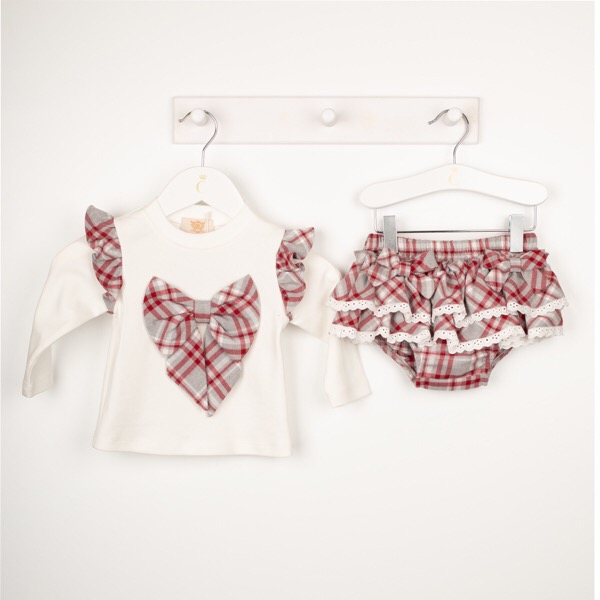 - Red & grey check bow on the front