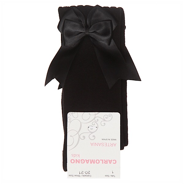 Knee high cotton socks with a pretty double satin bow on the side of the leg.