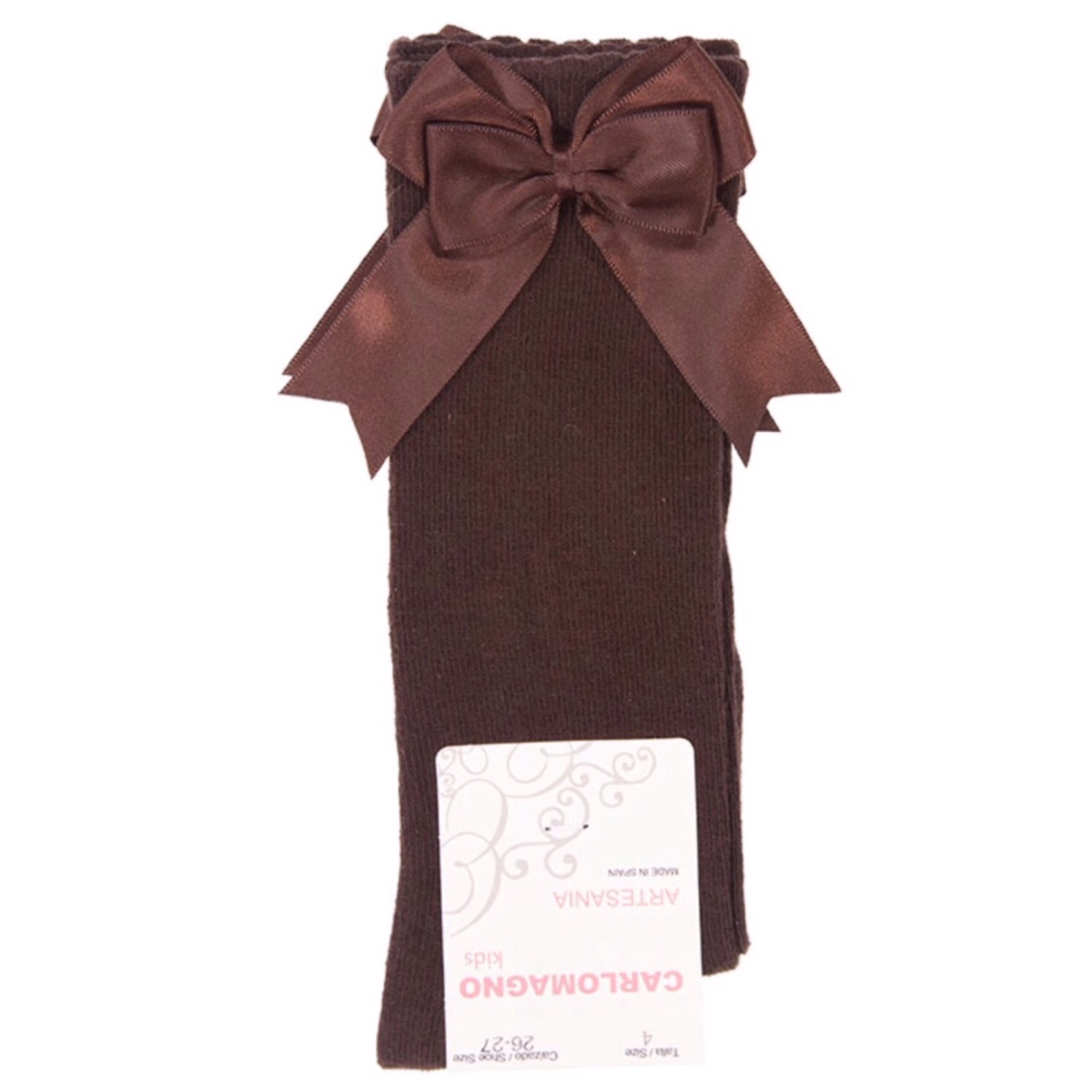 Knee high cotton socks with pretty double bow in satin on the side of the leg
