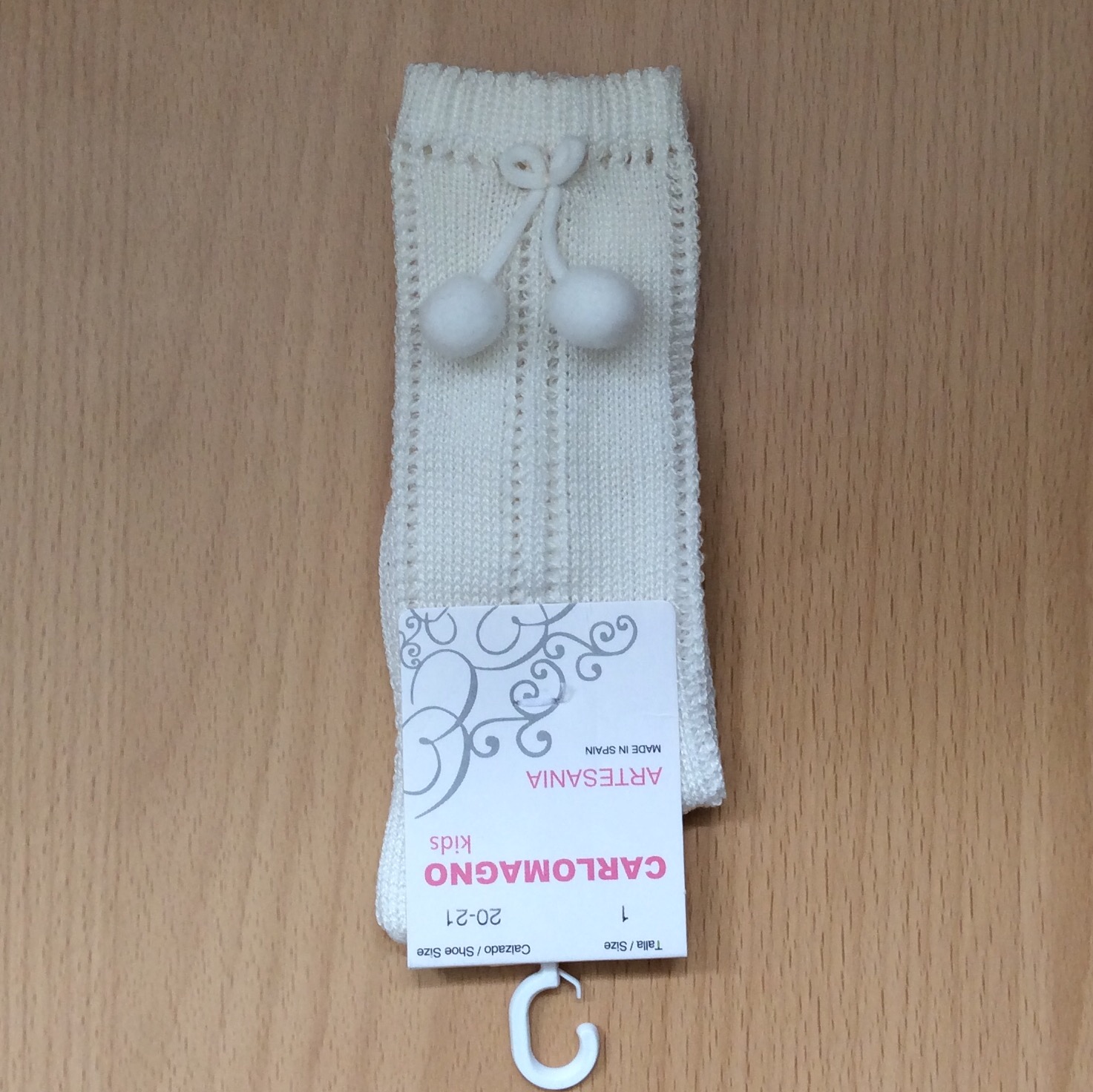 Be the first to review “Carlomagno Open Work Pom Pom Socks, Cream”