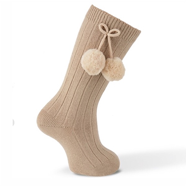 Carlomagno Ribbed Pom Pom Socks, Camel