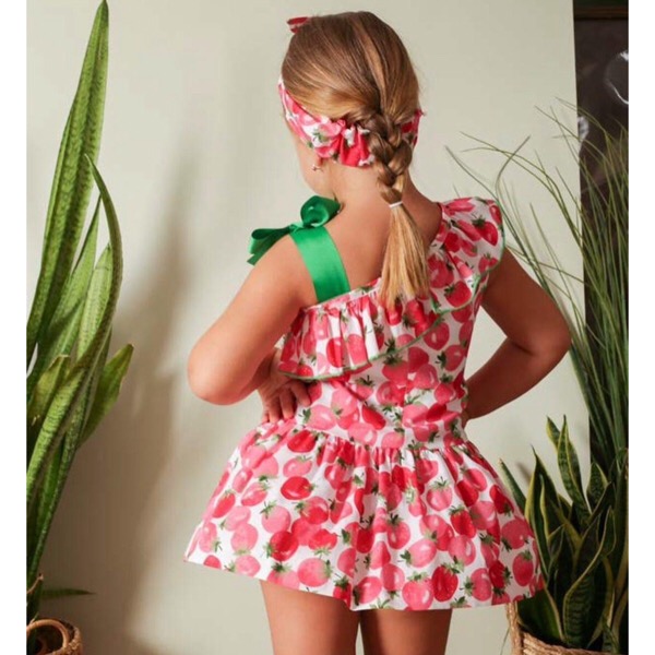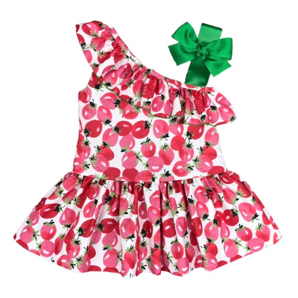 - White & pink strawberry print dress