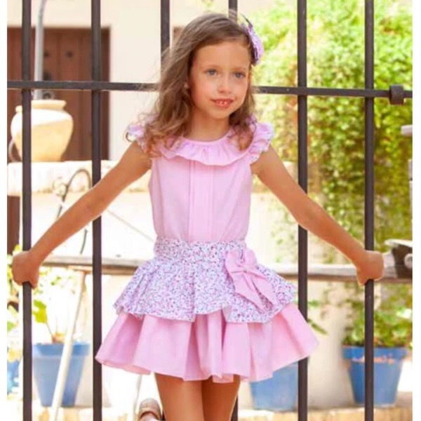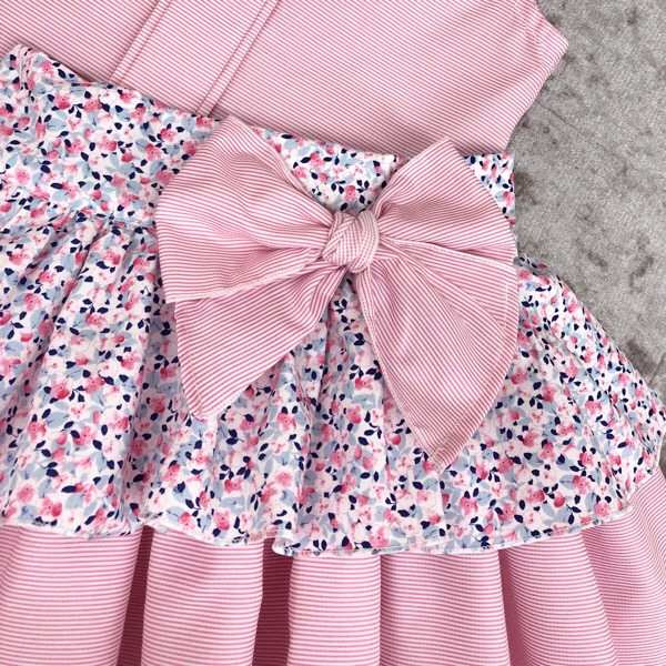 - Pink striped cotton skirt with pink & blue floral print overlay