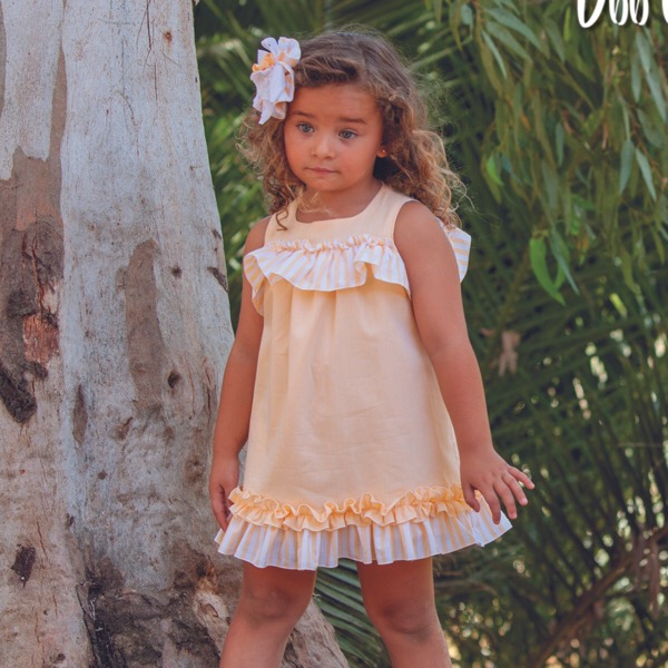 - Yellow ruffled trim & striped frill around the hem