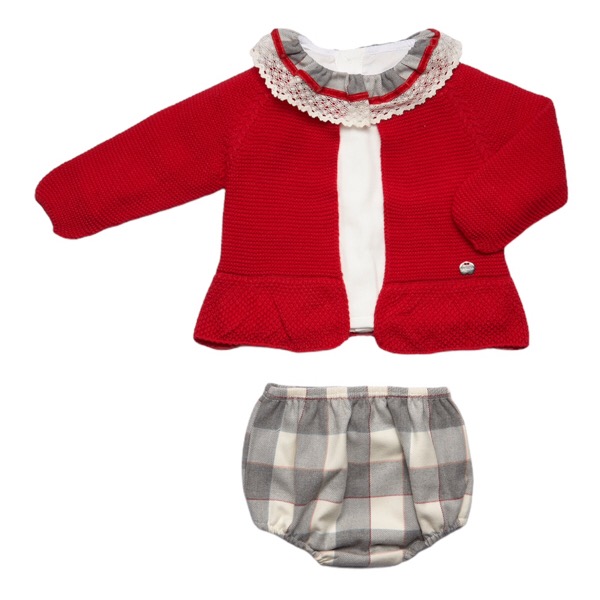 - Red knit cardigan