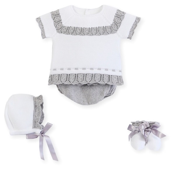 4 piece set in a white & silver grey knit