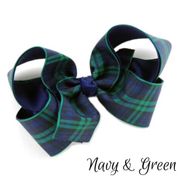 Our medium size bows are approximately 4.5 inches wide, made with grosgrain ribbon and attached to an alligator clip.