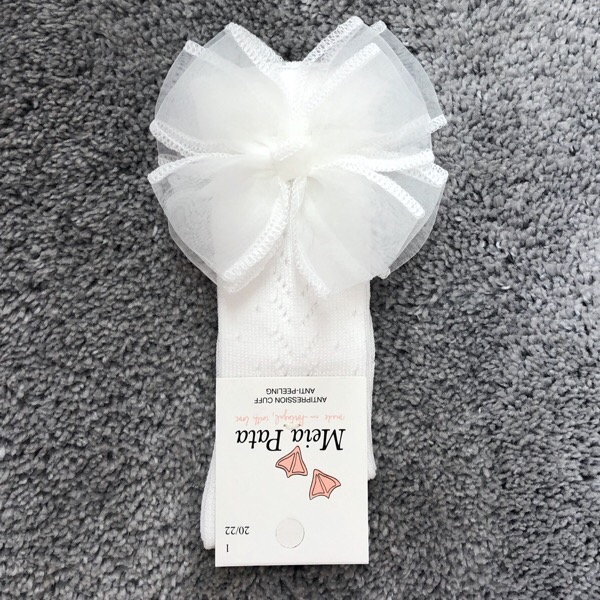 Shop now. Pay later. Always interest-free. Search Generic filters 0 0 Whats New GirlsBy Product0-24mth2 Years+NightwearBy AgePremature0 mth1 mthBy Poular brandsArea Moda InfantilCukaRahigoCarameloShop Now Boys Pre-order 0 – 24 months 2 Years+ Bodysuits & Vests Baby Babygrows Baby Outfits Bodysuits & Vests Blankets & Shawls Pram Accessories Socks & Tights Footwear Accessories Hoops & Underskirts Dolls, Prams & Toys Hair Accessories Hats Bibs Frilly Knickers Special Occasion Brands Sale 07785747815 bobbyann39@aol.com Facebook Instagram ## Mini basket to go here ## Whats New GirlsBy Product0-24mth2 Years+NightwearBy AgePremature0 mth1 mthBy Poular brandsArea Moda InfantilCukaRahigoCarameloShop Now Boys Pre-order 0 – 24 months 2 Years+ Bodysuits & Vests Baby Babygrows Baby Outfits Bodysuits & Vests Blankets & Shawls Pram Accessories Socks & Tights Footwear Accessories Hoops & Underskirts Dolls, Prams & Toys Hair Accessories Hats Bibs Frilly Knickers Special Occasion Brands Sale Home Shop Brands Meia Pata Organza Bow Socks, White Meia Pata Organza Bow Socks, White £8.99 Meia Pata Organza Bow Socks, White ā 000Meia Pata Organza Bow Socks, White ā 00Meia Pata Organza Bow Socks, White ā 1Meia Pata Organza Bow Socks, White ā 2Meia Pata Organza Bow Socks, White ā 4Meia Pata Organza Bow Socks, White ā 6Meia Pata Organza Bow Socks, White ā 8 Sock Size 0000012468Choose an option0000012468Clear - Meia Pata Organza Bow Socks, White quantity + Add to basket Add to wishlist Remove from wishlist SKU: N/A Categories: Brands, Knee High Socks, Meia pata, Socks & Tights Description Additional information Reviews (0) Description meia pata ss21 Knee high length Open work sock Organza double bow on the side of the leg Additional information Sock Size 000, 00, 1, 2, 4, 6, 8 Reviews There are no reviews yet. Be the first to review “Meia Pata Organza Bow Socks, White” Cancel replyYou must be logged in to post a review. Related products 50%Carlomagno Ribbed Pom Pom Socks, Camel £5.50 £2.75 Add to wishlist Remove from wishlist 50%Carlomagno Open Work Pom Pom Socks, Camel £4.50 £2.25 Add to wishlist Remove from wishlist 50%Carlomagno Open Work Pom Pom Socks, Blue £4.50 £2.25 Add to wishlist Remove from wishlist 50%Willow, All Ruffled Up Socks, Ivory £12.00 £6.00 Add to wishlist Remove from wishlist