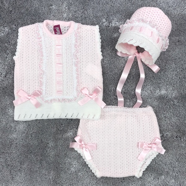 - Pink & white knit pants with elasticated waist