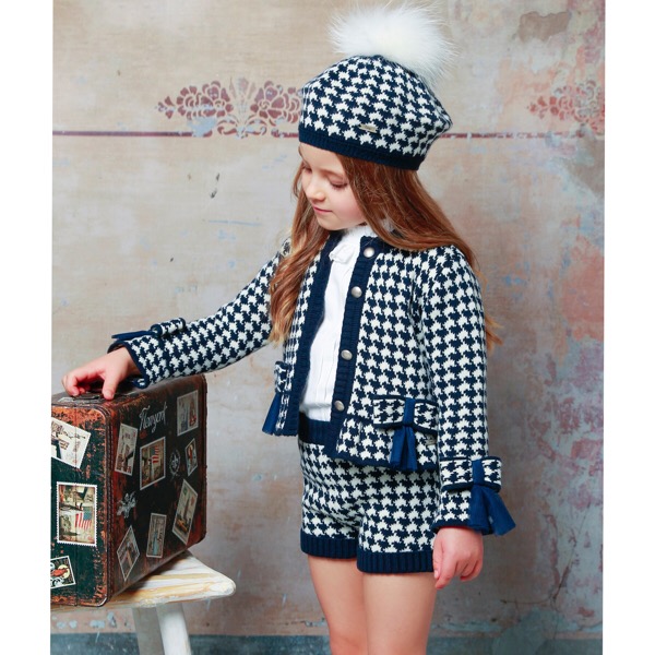 Red & cream 4 piece cardigan, shorts, blouse & beret set