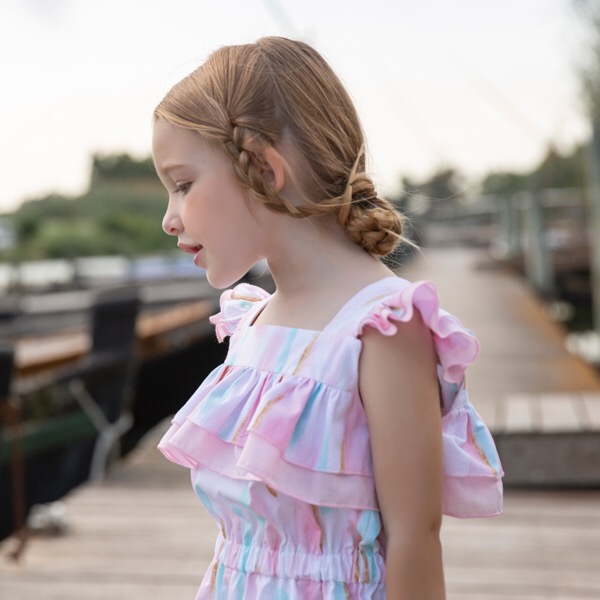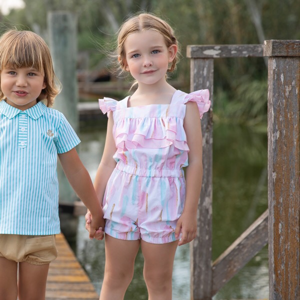 - White, pink & blue cotton playsuit