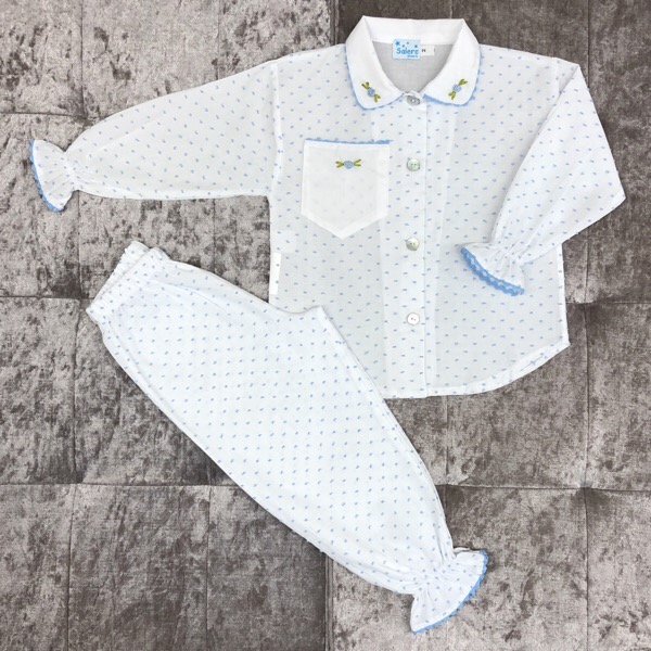 Shop now. Pay later. Always interest-free. Search Generic filters 0 0 Whats New GirlsBy Product0-24mth2 Years+NightwearBy AgePremature0 mth1 mthBy Poular brandsArea Moda InfantilCukaRahigoCarameloShop Now Boys Pre-order 0 – 24 months 2 Years+ Bodysuits & Vests Baby Babygrows Baby Outfits Bodysuits & Vests Blankets & Shawls Pram Accessories Socks & Tights Footwear Accessories Hoops & Underskirts Dolls, Prams & Toys Hair Accessories Hats Bibs Frilly Knickers Special Occasion Brands Sale 07785747815 bobbyann39@aol.com Facebook Instagram ## Mini basket to go here ## Whats New GirlsBy Product0-24mth2 Years+NightwearBy AgePremature0 mth1 mthBy Poular brandsArea Moda InfantilCukaRahigoCarameloShop Now Boys Pre-order 0 – 24 months 2 Years+ Bodysuits & Vests Baby Babygrows Baby Outfits Bodysuits & Vests Blankets & Shawls Pram Accessories Socks & Tights Footwear Accessories Hoops & Underskirts Dolls, Prams & Toys Hair Accessories Hats Bibs Frilly Knickers Special Occasion Brands Sale Home Shop Girls 0 - 24 months Salero Plumeti Pj’s, Blue Salero Plumeti Pj’s, Blue £49.99 Salero Plumeti Pj’s, Blue – 12-18mSalero Plumeti Pj’s, Blue – 18-24mSalero Plumeti Pj’s, Blue – 3-4ySalero Plumeti Pj’s, Blue – 5-6ySalero Plumeti Pj’s, Blue – 7-8ySalero Plumeti Pj’s, Blue – 9-10y Size Choose an option12-18m18-24m3-4y5-6y7-8y9-10yClear - Salero Plumeti Pj’s, Blue quantity + Add to basket Add to wishlist Remove from wishlist SKU: N/A Categories: 0 - 24 months, 2 Years+, Brands, Girls, New in, Nightwear, Salero Nightwear Description Additional information Description Salero Nightwear White & blue plumeti cotton pyjamas Hand embroidered blue rose detail Blue ric-rac trim Button fastening on the front Elasticated waist Additional information Size 12-18m, 18-24m, 3-4y, 5-6y, 7-8y, 9-10y Related products Laura Dare White & Pink Ruffle Knicker Set £20.00 Add to wishlist Remove from wishlist Laura Dare Rosebud Bubble £20.00 Add to wishlist Remove from wishlist 56%Haute Baby, Emma Rose Knicker Set £45.00 £20.00 Add to wishlist Remove from wishlist Crinoline Underskirt £16.99 Add to wishlist Remove from wishlist