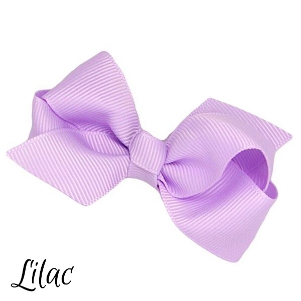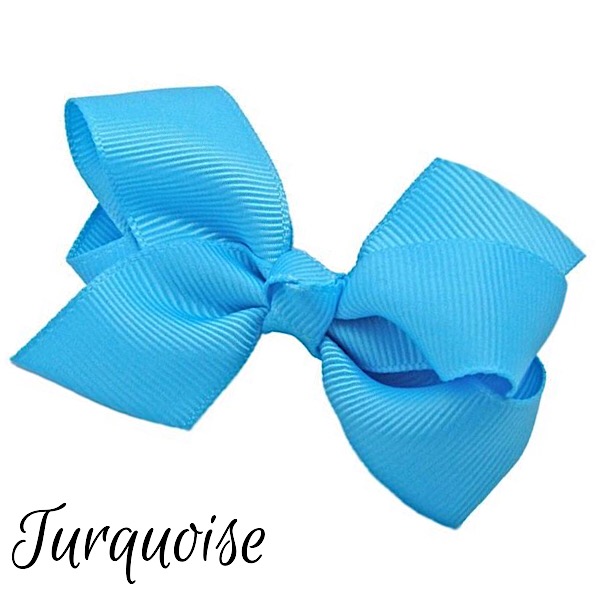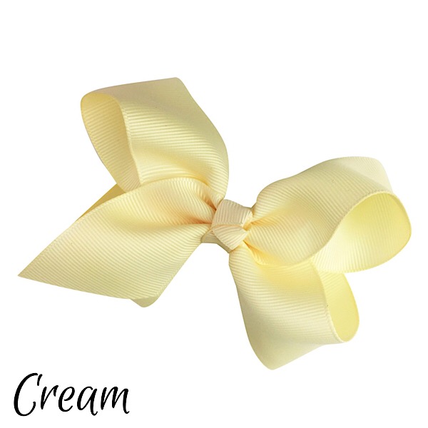 Our small size bows are approx 3-4 inches wide, made with grosgrain ribbon and attached to an alligator clip, available in a wide range of colours.