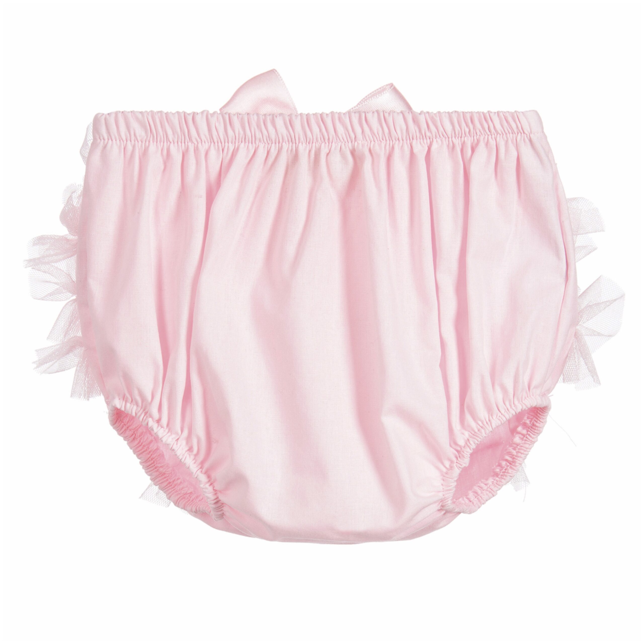 Cotton knickers with layers of tulle on the back and a satin ribbon bow.